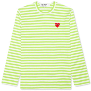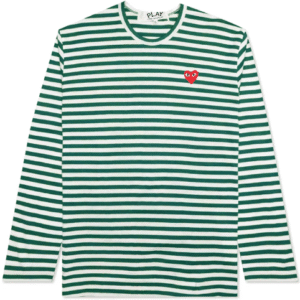 Elevate your everyday style with the timeless and effortlessly fashionable CDG PLAY Big Red Heart Striped L/S T-Shirt (White/Green). This