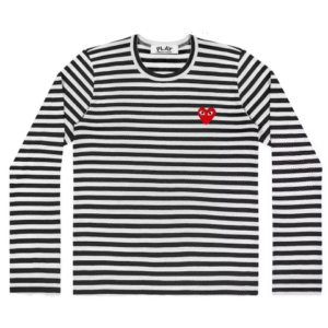 The CDG PLAY Big Red Heart Striped L/S T-Shirt (White/Red) is a perfect blend of comfort, modern design, and timeless