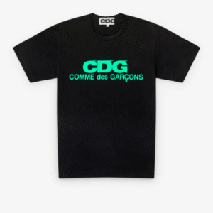 The CDG Fluo Color Logo Tee Black/Green is a bold statement piece for those who value modern streetwear infused with