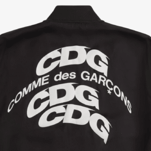 Elevate your streetwear style with the CDG Warped Logo Bomber Jacket Black, a perfect fusion of contemporary fashion and timeless