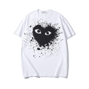 Elevate your wardrobe with the Comme Des Garcons Paint Heart White Shirt, a perfect blend of contemporary fashion and playful