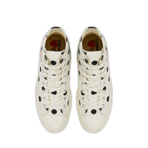 Step into timeless streetwear fashion with the CDG Play Converse Polka Dot Red Heart Chuck Taylor All Star ’70 High
