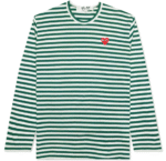 Elevate your everyday style with the timeless and effortlessly fashionable CDG PLAY Big Red Heart Striped L/S T-Shirt (White/Green). This piece blends classic design with bold details, making it an essential choice for anyone who loves clean, modern streetwear. The signature red heart logo on the chest adds a playful yet iconic touch that stands out while remaining simple and refined.