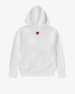 Elevate your streetwear collection with the CDG Play Unisex Reverse Black Heart Zip Hooded Sweatshirt White, a perfect blend of