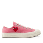 The Comme Des Garcons x Converse Low Top is a perfect blend of iconic streetwear design and timeless sneaker culture. Known for its minimal yet artistic approach, this collaboration brings together the classic Converse silhouette with the creative vision of Comme Des Garcons. The result is a sneaker that is both stylish and versatile, designed for individuals who want to stand out effortlessly. Featuring the signature heart-with-eyes logo, it adds a touch of playfulness while staying true to its high-fashion roots. Whether you are dressing casually or styling for a streetwear-inspired look, these sneakers provide comfort and elegance in every step.
